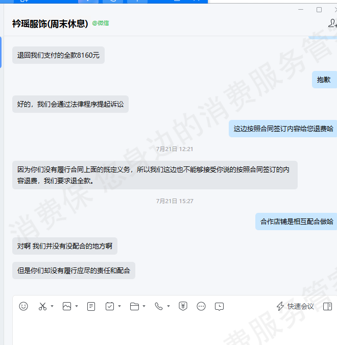 本人2025年5月16日 和重庆云璟电子商务有限公司 ,办理淘宝店铺代运营,以及GMV15万的业绩产出协议,共支付费用8160元,该机构诱导消费,虚假宣传,本人在该机构办理网店代运营服务后,对方提供的服务与宣传完全不符,店铺头像更新不及时,沟通反馈不及时,敷衍工作,0产出,周末无有效值班机制、没有全力运营,消极怠工等,因此提出退还所有费用。
