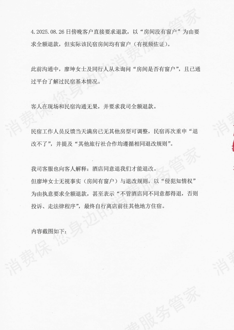 通过该旅行社订了南宁崇左“大新淇河山境民宿”,本人已明确告知需要“居住环境好”,旅行社工作人员未告知我们民宿窗户被一堵墙挡完,甚至在备注中恶意引导告知我们视野较好。到了民宿发现无窗户,民宿不给换房,旅行社告知本人其不了解该房间窗户完全被挡,也不积极协调处理。本人无法忍受不通风无视野恶劣的居住环境,重新订了别的酒店。民宿和旅行社互相推诿不退房费。