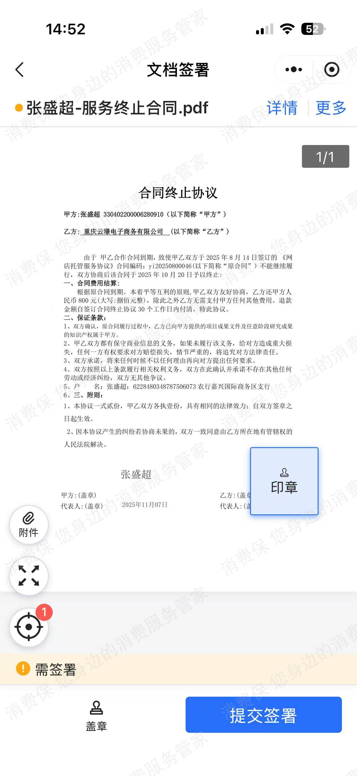 我司已收悉贵方关于提前终止《网店托管服务协议》(签订日期:2025年8月14日,以下简称“原合同”)并申请退款的相关诉求。我们高度重视贵方的反馈,并对服务过程中未能完全达到贵方预期表示诚挚的歉意。根据合同甲方条款,甲方承诺不单方终止合同以及停付佣金服务费等费用。如甲方不信守承诺,单方终止合同或者逾期支付佣金、服务费等费用超过五日的,乙方视甲方为违约行为,有权停止为甲方提供服务且不返还己收的全部费用。提出店铺优化2600元甲方也并没有做,只是我方给到的建议,甲方所有的推广费用都是甲方认可并直接充值于淘宝*台并非我方收取,综上所诉,我方也做出如下改进