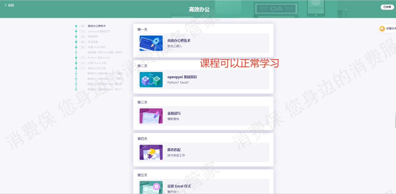 1.用户于2022年1月23日通过我司公众号购课链接购买我司Python课程,其课程内容包含“基础语法、爬虫精进、数据分析、高效办公”,关于课程所包含的学*内容以及课程学*安排,在用户购买课程的商品详情页面中均已说明,我司也在用户购课后为其开通了所有课程学*资格,课程内容与报名页面宣传一致,并无“课程实际与宣传一点都不符”的情况。
