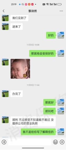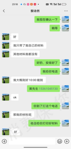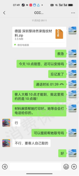 2025年11月2日我司向客人发送材料后,已联系陪签员于2025年11月5日客人录指纹时提供陪签服务,但因工作疏忽未将客人材料发送给陪签员。这里我们深表歉意,但我社发现此问题后,于2025年11月5日上午9:10启用紧急预案,协调陪签员联系客人并准备好材料,实际未影响客人录指纹的时间与进度。(详见附件3)