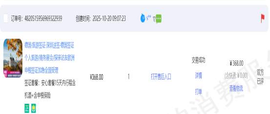 客人黎诗然2025年10月20日在我社飞猪*台下单了我社安心套餐15天内行程含机票酒店+申根保险”申根签套餐,订单号:48***************39,总价368元,我社承接此项业务后积极帮助客人完成签证办理,最终由于被拒签导致投诉,对此我社深感歉意,并做出以下情况说明:一、客人拒签的原因: